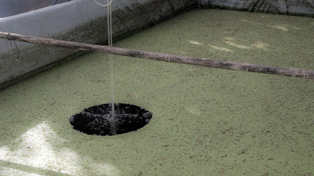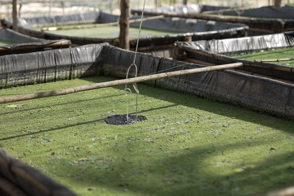 - นิเวศบ่อดิน: คุณตาแดงออกแบบระบบให้พึ่งพาตัวเอง แหนแดงช่วยดูดซับสารอาหารส่วนเกิน หอยขมช่วยทำความสะอาดก้นบ่อ กลายเป็นระบบนิเวศขนาดจิ๋วที่แทบไม่ต้องเปลี่ยนน้ำ (ถ่ายน้ำเพียงปีละครั้ง)